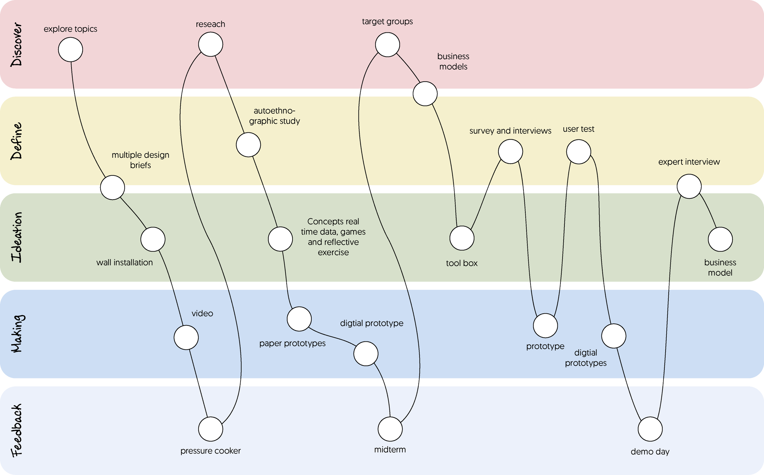 This expertise area focusses on realizing concepts and being able to experience these ideas. As I mentioned in the past section, in the first year I learned the basics of design and the skills require to design. So in the first year I learned how to program and build electrical systems to use in my designs, from the courses creative programming and creative electronics. As well as some hand-on experience with prototyping from all kinds of projects and courses. For a long time, I thought that this expertise area was all about making a high fidelity final designs. Which is not the most interesting part of designing for me. However, I have now realize that is about being able to show a concept and start a discussion and interacted an experience with it.